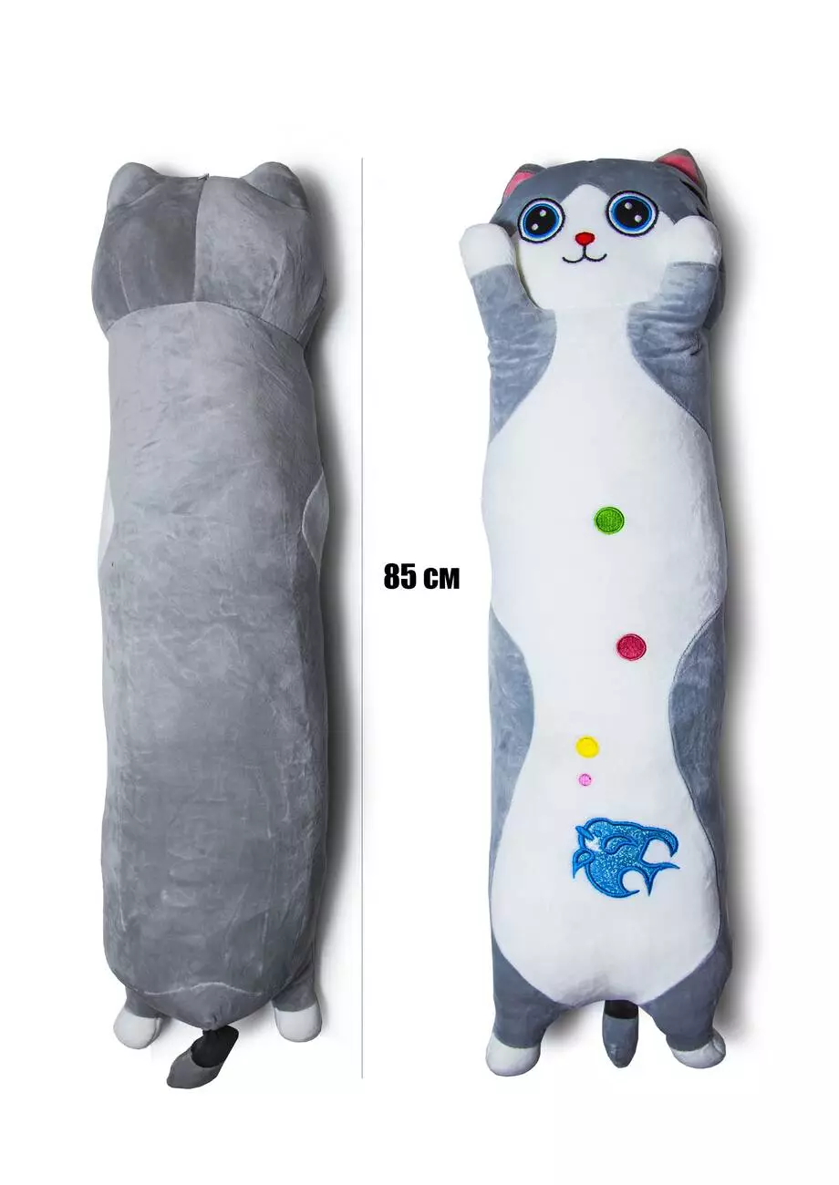 <p>Длинный Кот Батон 85 см - стильная мягкая игрушка необычной формы. Изделие выполнено в виде котика, с маленькими лапками, коротким хвостиком и длиным упитанным туловищем. Все мелкие элементы мордочки представлено в упрощенном мультяшном стиле. Цвета окраса котика достаточно мягкие и нежные. Дизайн игрушки позволяет разносторонне её использовать. Помимо участия в детских постановках, длинный Кот Батон станет отличным расслабляющим средством, если мять его в руках. Так же плюшевый может оказаться достойной замечательной заменой подушечке, если положить его под шею во время длительной поездки в автомобиле. И само собой разумеется что такая примечательная игрушка хорошо впишется интерьер гостинной или детской.</p><br />
