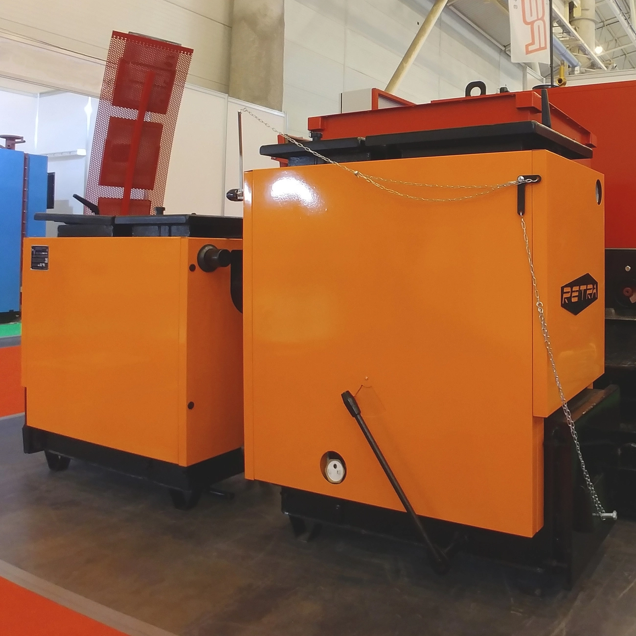 Стальной теплообменник состоит из двух частей: в передней части - камера сгорания, в задней - конвективные каналы. Весь теплообменник охлаждается водой, образуя «водяную рубашку». Вода из системы теплоснабжения растекается по внутренним полостям теплообменника и через его металлические стенки отбирает тепло от топлива горящего (контактным и радиационным способами) и газообразных продуктов сгорания (конвективным способом). Процесс горения происходит на подвижных или неподвижных чугунных колосниках, под колосниками находится зольный ящик. На верхней передней стороне котла размещен люк, на передней стороне люк для удаления золы и шуровки и термометр. На задней стороне находятся: дымоход с шибером, ручка прямой тяги, входящий и исходящий патрубки. Под декоративным кожухом расположен слой теплоизоляции. На левой стороне модели Ретра 6М Комфорт находится ручка механизма шуровки колосников.