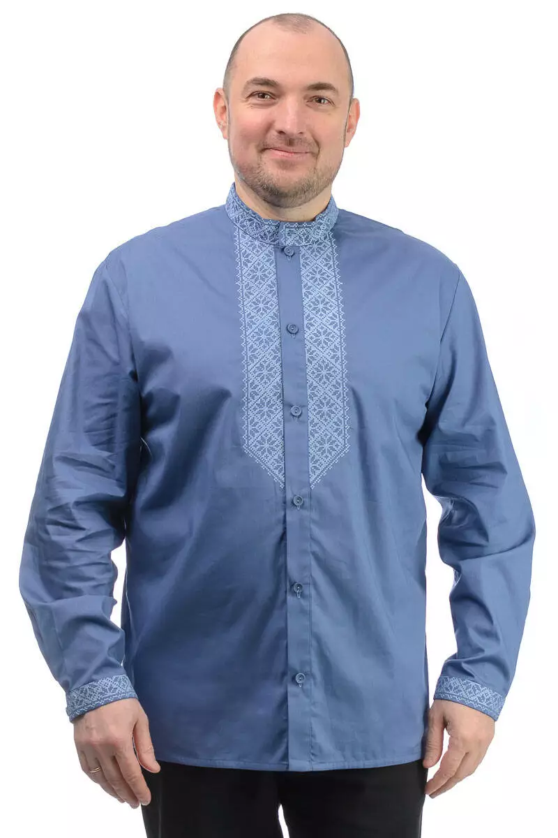 Вишиванка вільного покрою, застібається на ґудзики. Рукав довгий на манжеті.