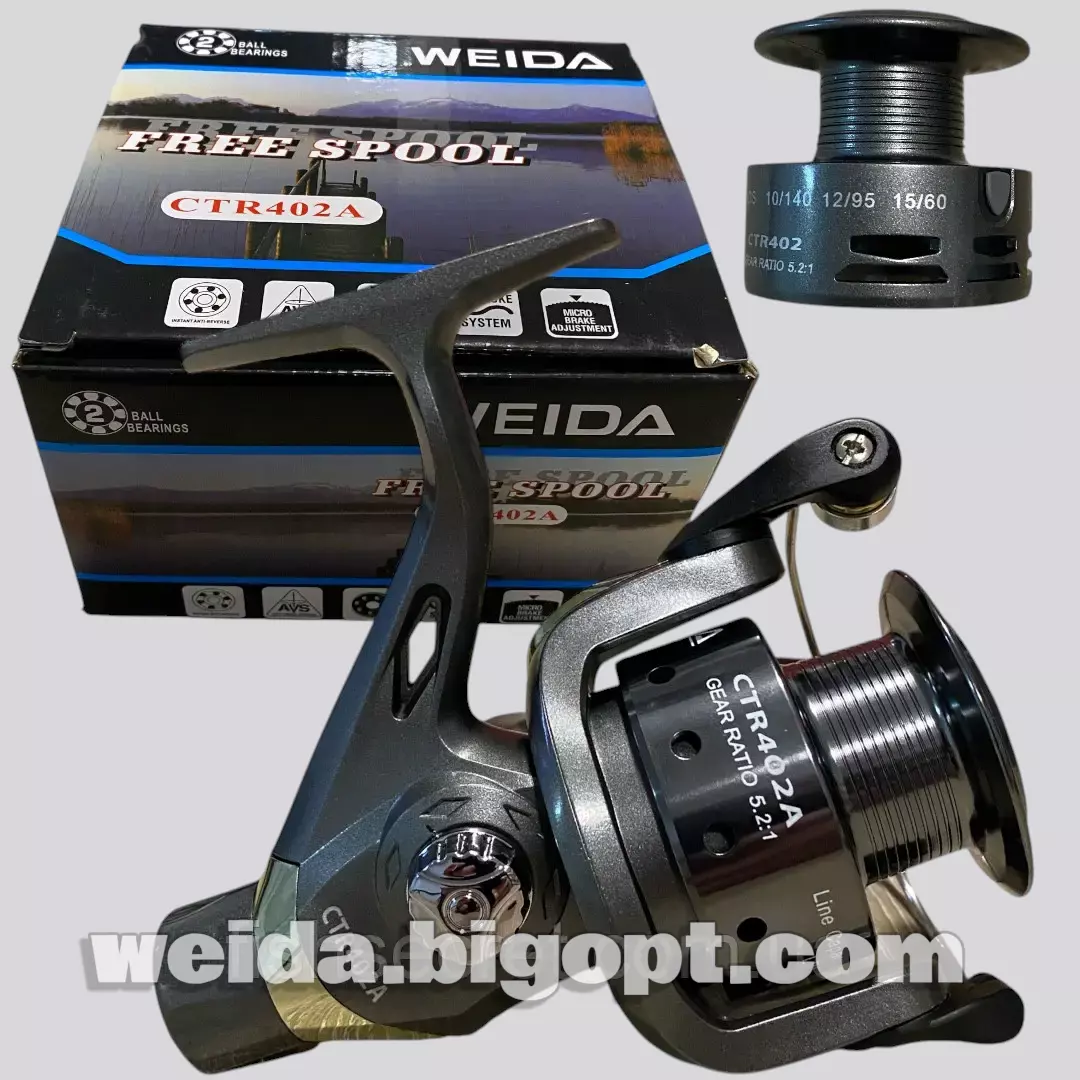 Weida CTR402A — універсальна безінерційна котушка, що добре підходить для спінінгу або фідера. Має алюмінієву шпулю, задній фрикціон і продуману конструкцію, яка захищає механізм від пилу та бруду. Система з антиреверсом, збалансований ротор, протизакручуючий ролик лісоукладача і наявність вільного ходу забезпечують плавну та стабільну роботу при підмотці та виважуванні риби. Рукоятка з універсальним розташуванням — під праву або ліву руку — додає комфорт при ловлі. CTR402A — хороший вибір як для початківців, так і для досвідчених рибалок, які шукають недорогу і надійну снасть.