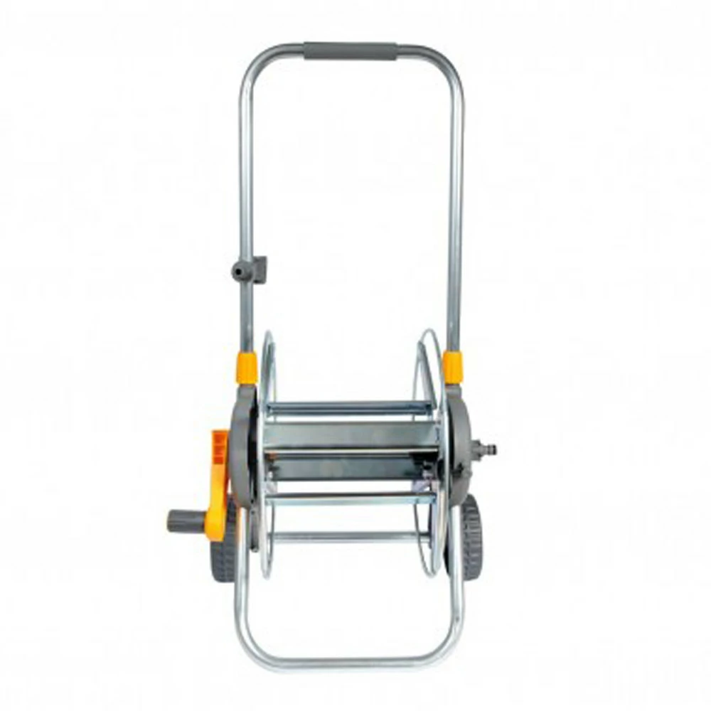 Завдяки збільшеній висоті котушки, яка досягає 750 мм, великим рифленим колесам та сталевій осі, котушку дуже легко переміщати дільницею. Спеціальна форма опорної рами та низький центр тяжіння забезпечують максимальну стабільність та перешкоджають падінню. Ідеально підходить для великих садових ділянок, просте та надійне рішення для переміщення та використання шлангів довжиною до 60 м. Виготовлена із високоякісної оцинкованої сталі, котушка витримує високі навантаження протягом тривалого часу.