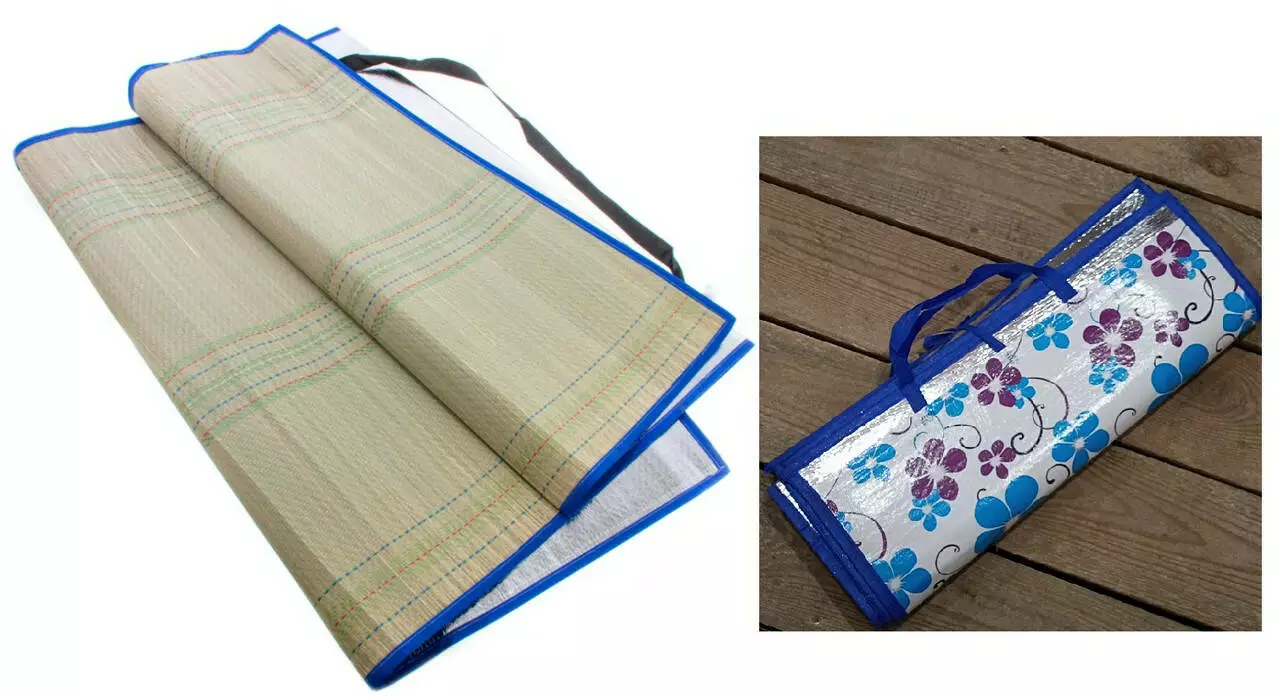 Коврик-сумка бамбуково-фольгированный пляжный 150*165см/ цветы
