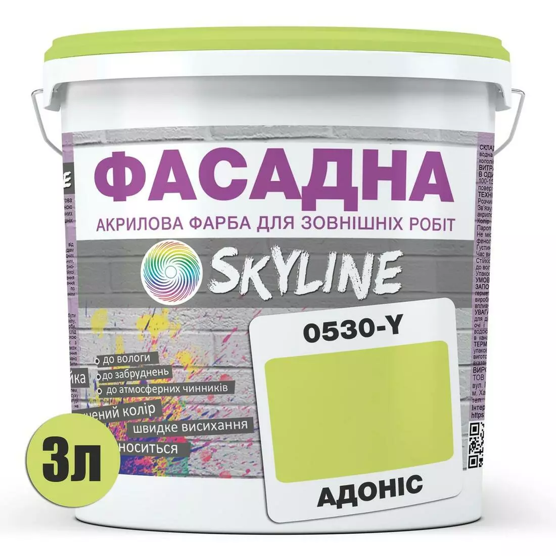 Насыщенная, атмосферостойкая матовая фасадная краска Skyline (Скайлайн). Выпускается в уже готовых заколерованных тонах. Огромная палитра включает в себя как нежные, пастельные оттенки, так и яркие, сочные и смелые цвета. Не имеет запаха. Экологически безопасный продукт. Для колорирования используются концентрированные пигменты высокого качества, которые сохраняют первозданный цвет краски и не выгорают на солнце более 10 лет.