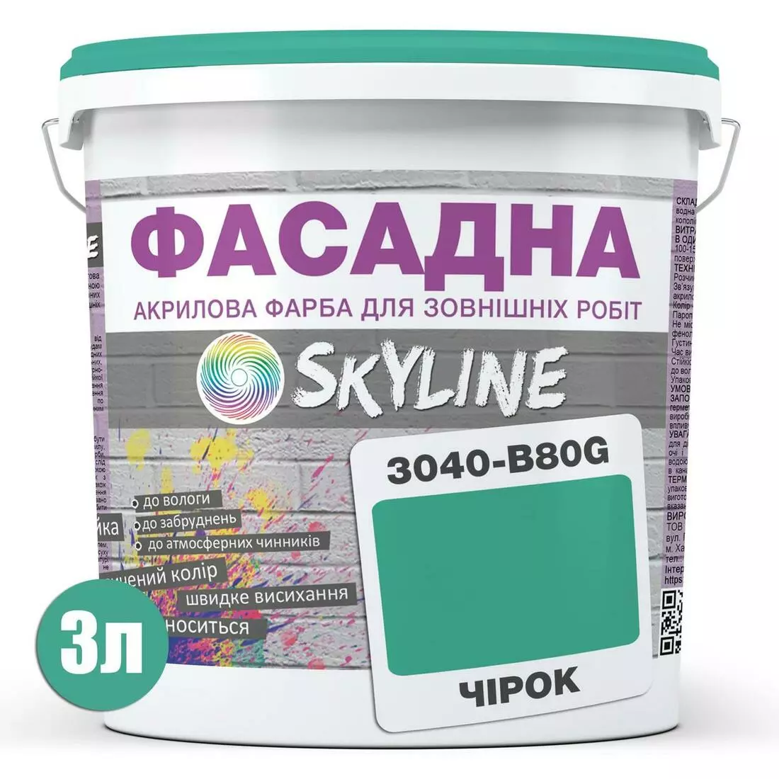 Краска Акрил-латексная Фасадная Skyline 3040-B80G Чирок 3л