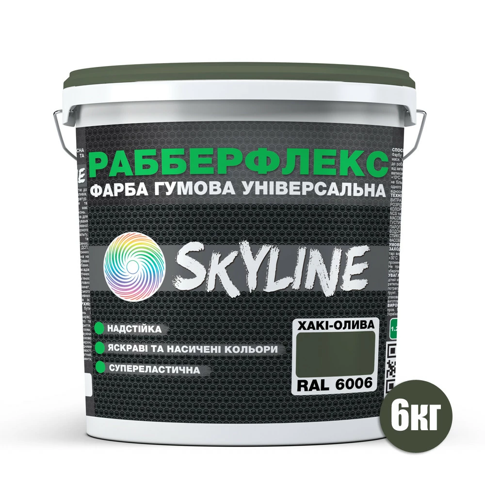 Краска резиновая универсальная «РабберФлекс» СкайЛайн (RubberFlex SkyLine) для применения снаружи и внутри помещений, обладающая повышенной стойкостью к механическим и атмосферным воздействиям, выдерживает любые перепады температур, стойкая к воздействию ультрафиолета и инфракрасного излучения. Обладает высокой паропроницаемостью. Приятна в работе, легко наносится, не растекается и не разбрызгивается. Имеет насыщенную однородную консистенцию. Высокоэластичный материал с отличной адгезией к любым поверхностям.