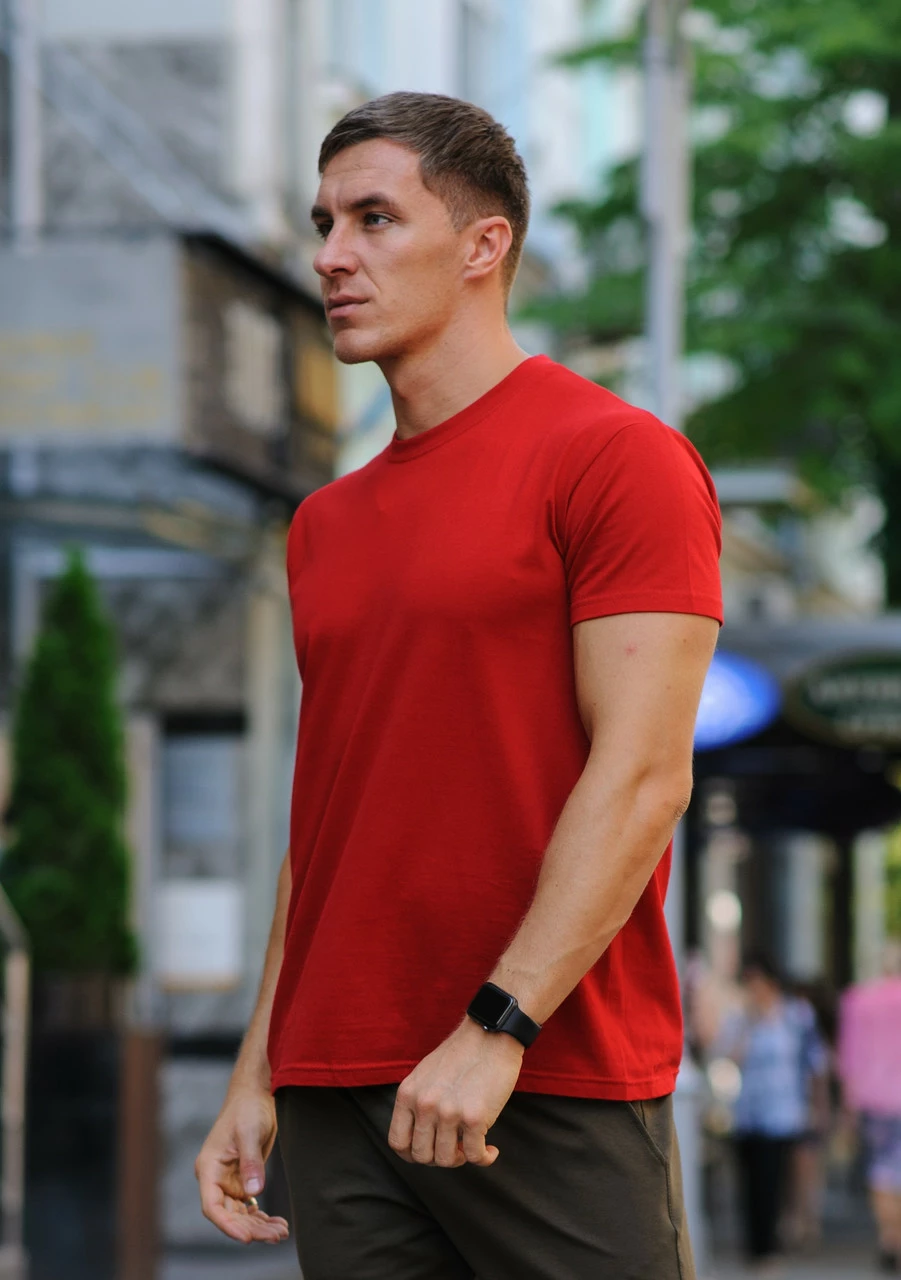 Красная мужская футболка / однотонные хлопковые футболки