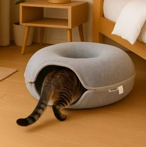 Лежанка для котів, антистресовий пончик, круглий тунель PURLOV!