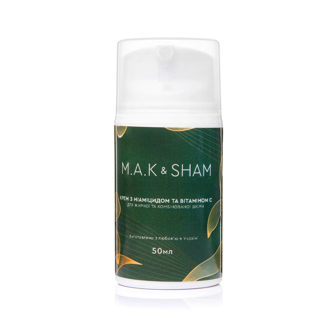 Крем з ніаміцидом та вітаміном С для жирної та комбінованої шкіри від MAKSHAM - 100% натуральний косметичний засіб. Не містить спиртів, барвників та синтетичних елементів. У складі присутній ніаміцид - входить до складу препаратів, які використовуються для запобігання і зменшення гіперпігментації шкіри. Також має противугрові, антиоксидантні властивості. Крем перешкоджає фотостарінню шкіри, захищає від сонячної активності і зменшує її наслідки.