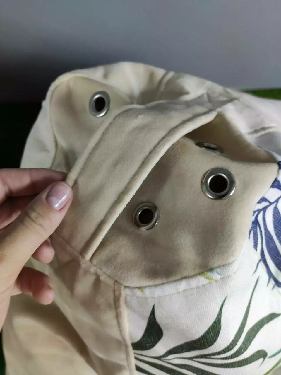 Пуф має ручку для зручного переносу та обов’язково люверси (отвори