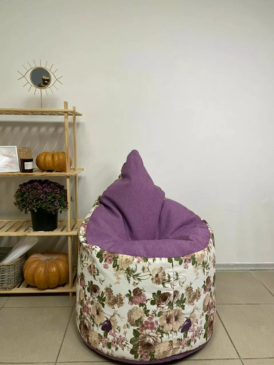 Пуф має ручку для зручного переносу та люверси для виходу