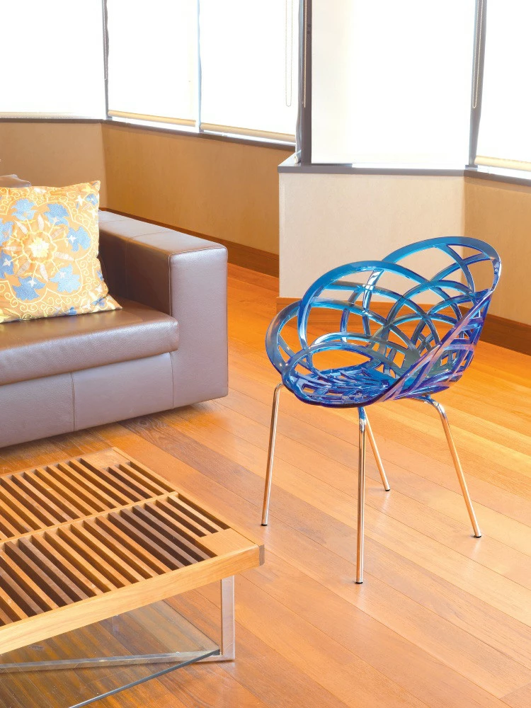 Ажурна крісло Flora-ML нагадує обрисами ніжну квітку. Плавні вигини крісла, що забезпечують зручну посадку і стійкі ніжки роблять його максимально комфортним. Сидіння виготовлено з полікарбонату, основа - металева, хромована, ніжки оснащені поліуретановими заглушками. Крісло виготовлено з міцних матеріалів, стійких до подряпин, механічних пошкоджень, дії вологи. Чудово доповнить інтер'єр вітальні, спальні, обідньої зони. Може бути використано для облаштування приміщення кафе, ресторану. Рекомендується використовувати в приміщенні.