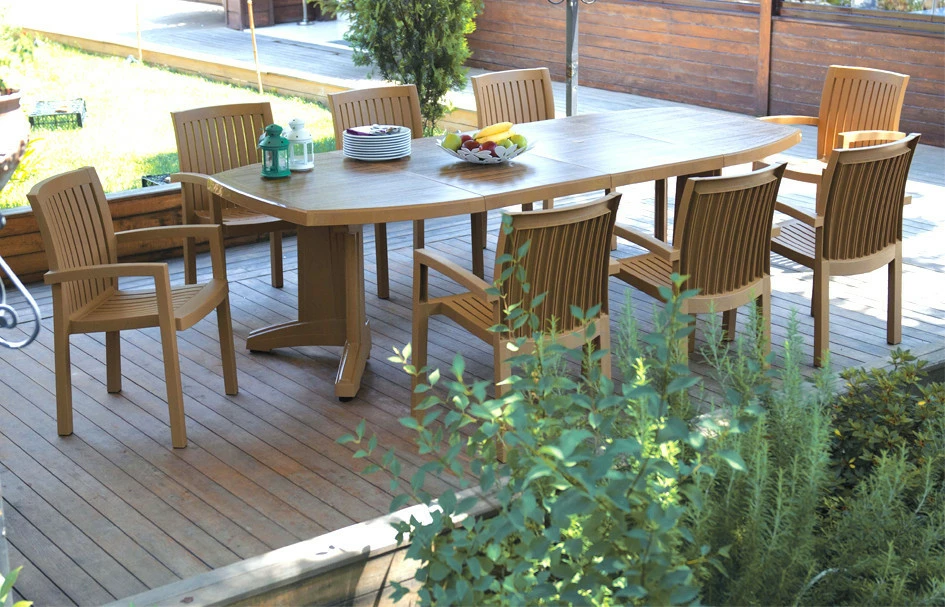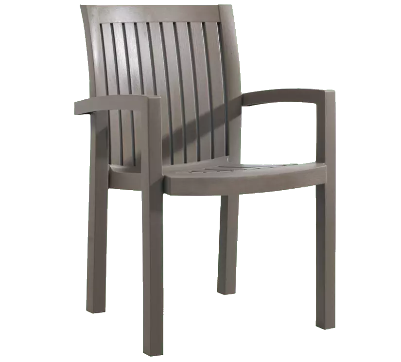 Нета - універсальне і практичне крісло з покриттям що імітує текcтуру дерева, прикрасить садову ділянку або літню терасу заміського будинку. Висока спинка і широке сидіння забезпечують комфорт і зручність в процесі використання. Завдяки моноблочній конструкції і високій якості матеріалів виріб збереже відмінний зовнішній вигляд і бездоганну якість протягом усього терміну служби. Крісло виготовлено з поліпропілену, стійкий до дії вологи, УФ-випромінювання, до перепадів температур. Призначено для використання як усередині приміщення, так і на вулиці. Штабельований.