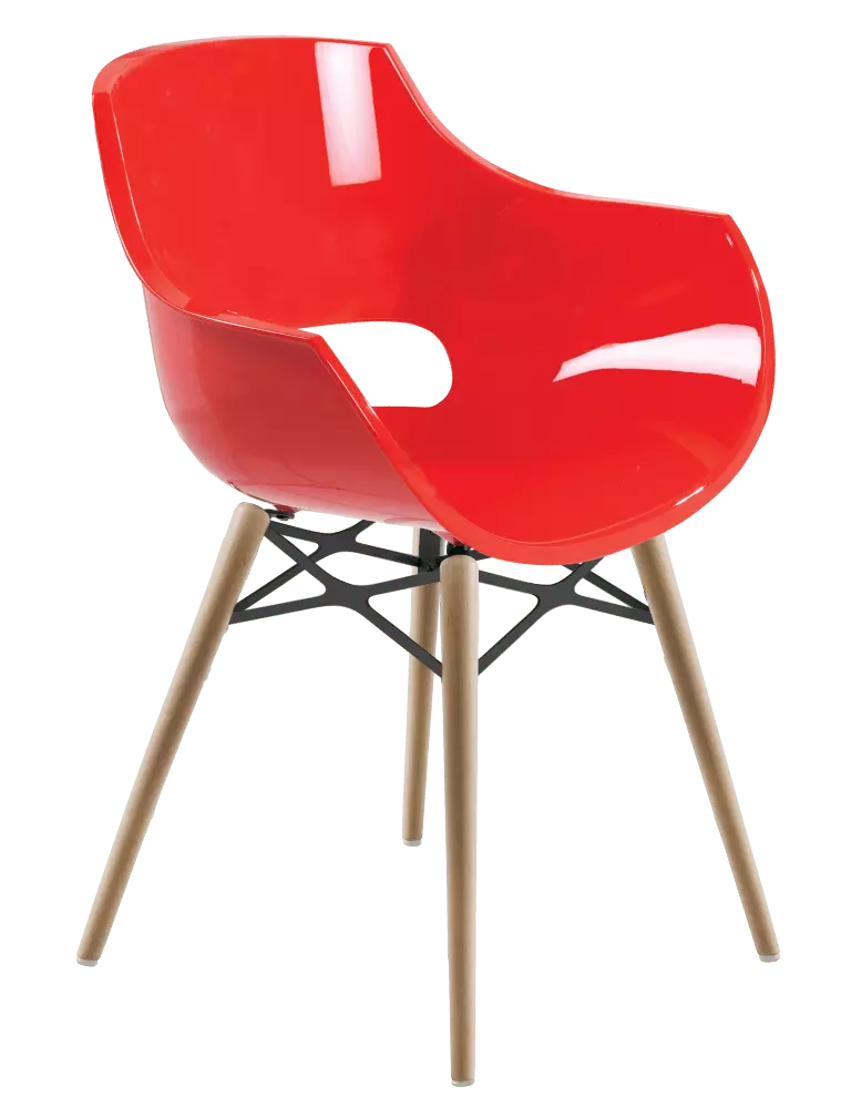 Яскравим акцентом в інтер'єрі вітальні, спальні, дитячої кімнати або обідньої зони стане дизайнерське крісло Opal-Wox. Його можна використовувати також при обладнанні робочого кабініу, офісу. Ергономічна модель зі зручними сидінням і спинкою напівкруглої форми забезпечить комфортну посадку. Опорний блок стільця складається з чотирьох конусних ніжок, виготовлених з масиву натурального дерева бук. На ніжках закріплені перехрещені між собою металеві стрижні. Безшовне крісло, з глянцевою поверхнею, виготовлене з полікарбоната- міцного матеріалу, стійкого до подряпин, механічних пошкоджень, вологи. Ніжки оснащені поліуретановими заглушками. Крісло рекомендується використовувати виключно в приміщенні.