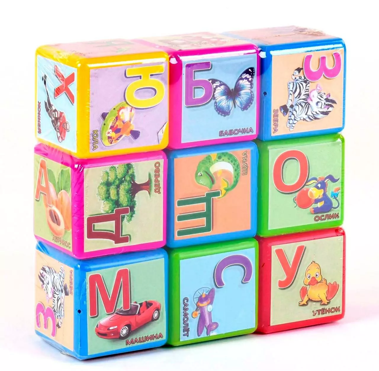 полезно малышу. Набор состоит из 9 кубиков с буквами и картинками.