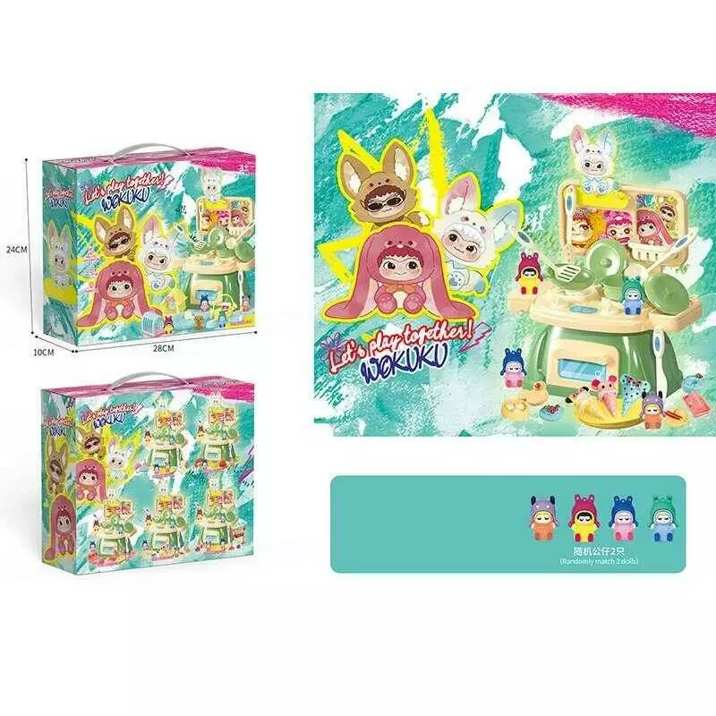 Кухня 228-77 D (48/2) висота 25 см, 2 гумові фігурки, набір продуктів, посуд: каструля, сковорідка, тарілочки, прибори, в коробці