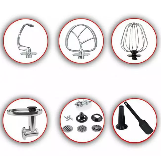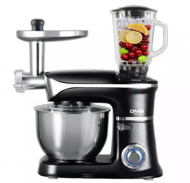 Кухонный комбайн DMS® 1900w KMFB-1900B имеет в себе подвижный работающий рычаг, к которому крепятся разные насадки, что позволяет данному комбайну быть многофункциональным - можно месить тесто с особой тщательностью, взбивать сливочный крем, приготовить пюре, перемешивать ингредиенты соуса. Так же соки можно с ягод, фруктов из под пресса получать. В наборе аксессуаров имеется шнековая мясорубка, которая с цельного куска мяса приготовит фарш для котлет.