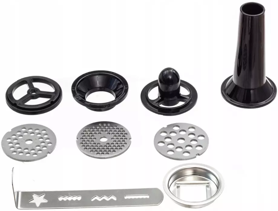 - В комплект мясорубки входит набор сит (3 вида)