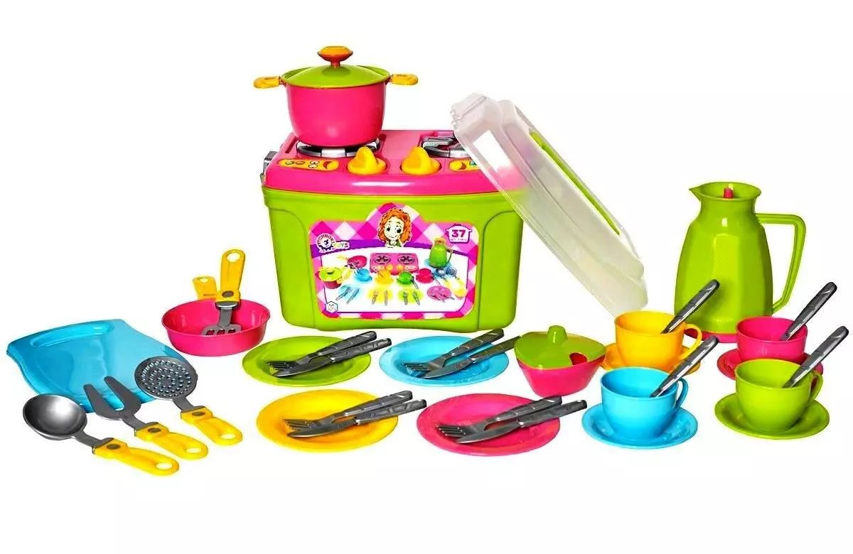вместе со своей маленькой хозяйкой. Игрушечная посуда упакована в