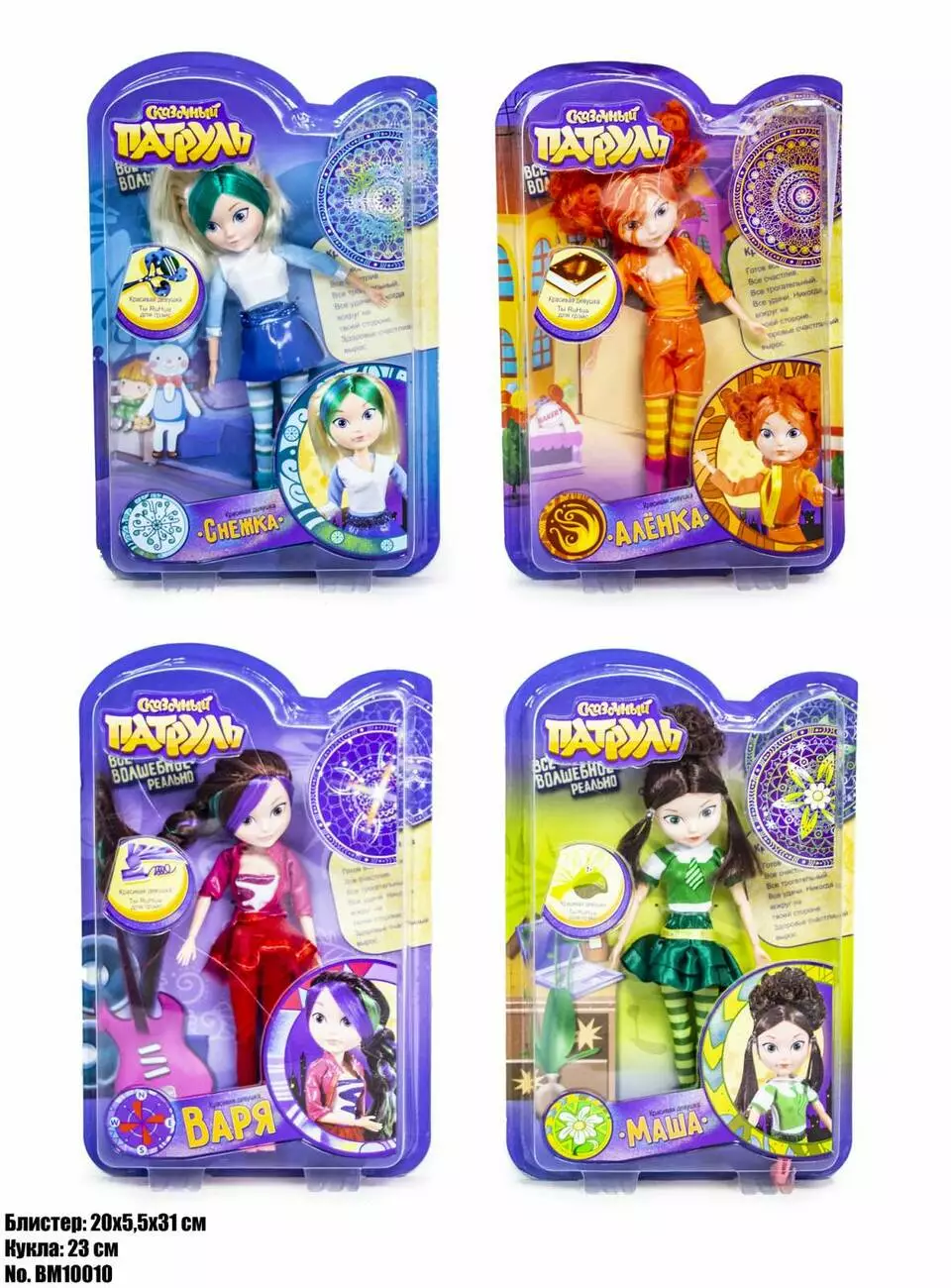 <p>Мультяшный герой очень часто становится любимой игрушкой ребенка. Вы можете сказочный патруль куклы купить своему малышу и теперь полюбившийся персонаж окажется не только на телеэкране, но и у него в руках. Играть с куклами-героинями гораздо забавнее, нежели наблюдать за ними в мультфильме. Дети умеют придумывать всевозможные сюжеты, вспоминая ранее увиденные события.</p><br /> <p> </p><br /> <p>Сегодня на полках магазинов красуется масса удивительных и приятных игрушек, которые вызывают невероятный восторг у ребенка. Коллекционные игрушки сказочный патруль не исключение.</p><br /> <p>Снежка - добрая и спокойная героиня. Внучка Деда Мороза.</p><br /> <p>Алёнка — веселая и непоседливая школьница, оптимистка.</p><br /> <p>Варя — неунывающая и ответственная героиня, лидер команды «Сказочный патруль».</p><br /> <p>Маша - сообразительная и изобретательная героиня, разбирается в электронных устройствах.</p><br /> <p>Размер куклы 23 см.</p><br /> <p>У куклы сгибаются все суставы</p><br /> <p><strong>*Технические характеристики и комплектация товара могут быть изменены производителем без уведомления.</strong></p><br /> <p><strong>Уточняйте важные для Вас параметры и комплектацию у наших менеджеров.</strong></p><br /> <p> </p><br />