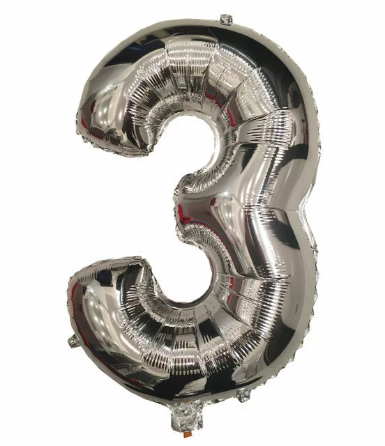 Фотография 1 товарной позиции интернет-магазина детских игрушек www.smarttoys.com.ua Кульки надувні фольговані MK 2723-1 (1000шт) цифри, 18 дюймів, цифра 3,срібло