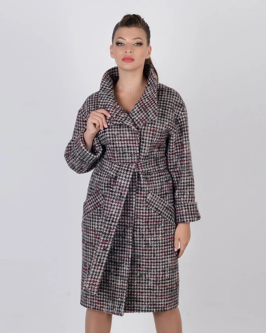 Пальто клетка бордо