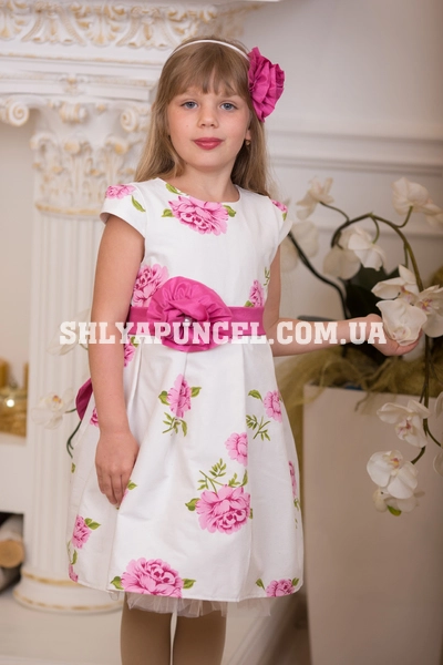 Платье дополнено обручем с таким же цветком, как на платье.