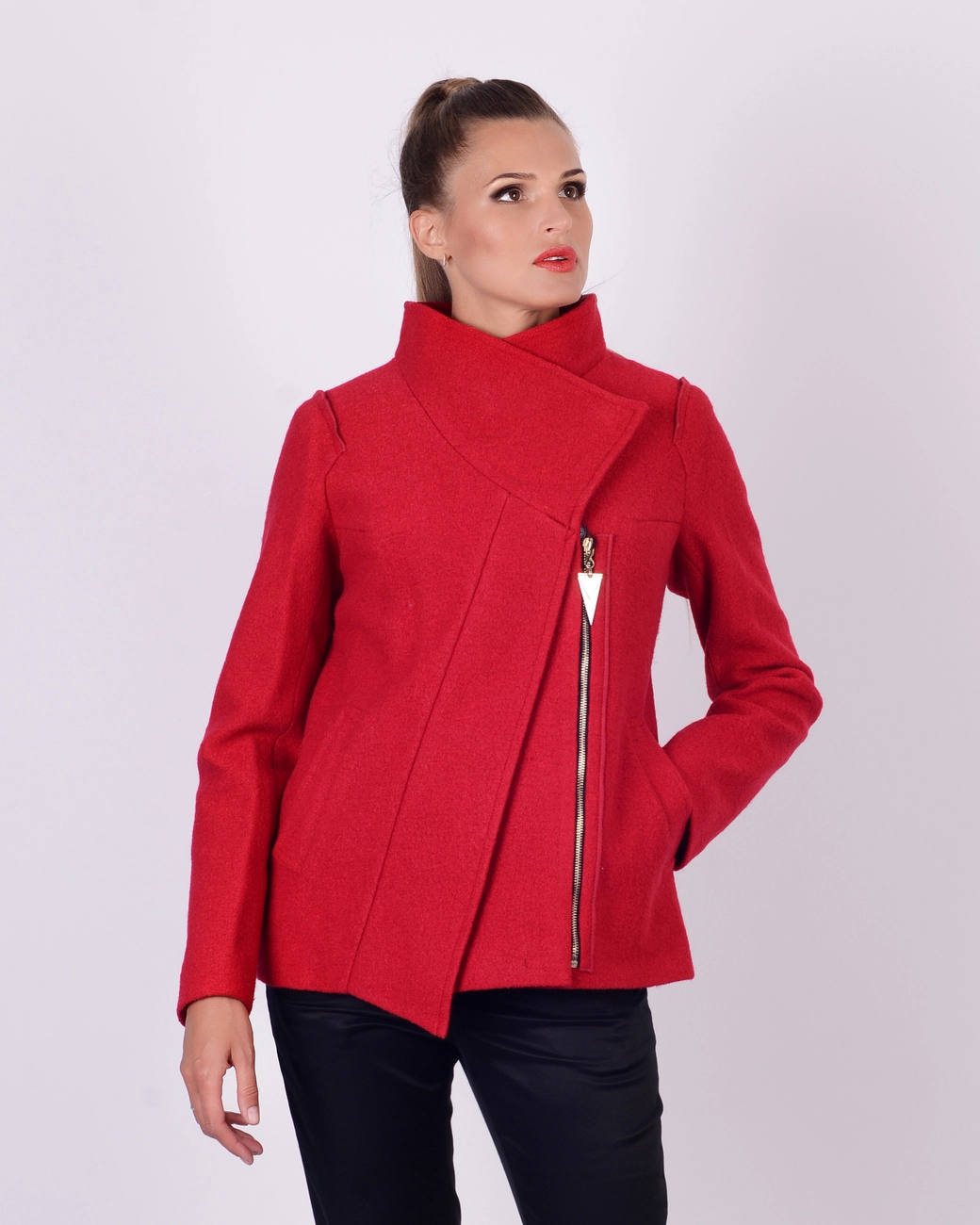 Молодежное полупальто из вареной шерсти. Крой свободный, ассиметричный. Застежка- молния, иммитация не обработанного края. Два прорезных кармана - воротник стойка. Цвета в наличии - красный, темно-синий, электрик, черный, изумрудный, джинсово-синий. Длина изделия - 63 см. Размреный ряд модели 42-50.