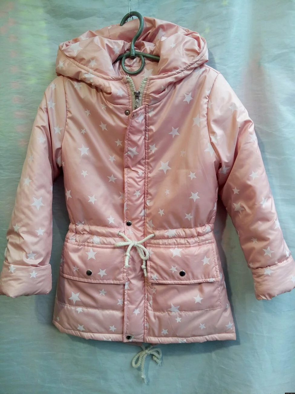 Подростковая парка для девочек,цвета пудры в звёздочку.