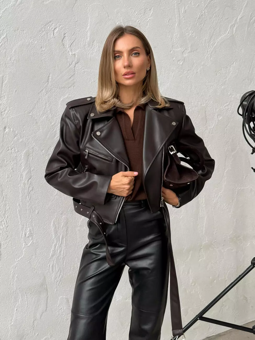 Куртка -косуха з ОБʼЄМНИМИ ПЛЕЧИМА колір шоколад