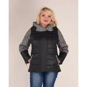 Короткая демисезонная куртка со съемным капюшоном, без ворота. Материал изделия - плащевка (лаке), на тонком синтепоне. По бокам и на плечах мелкая стежка. Крой приталенный, два прорезных кармана на молниях. Застежка - молния, по над застежкой рюша из материала изделия. Куртка с капюшоном может носиться с джинсами, брюками и лоферами или слипонами, без него с платьем или юбокой, застежка капюшона потайная и куртка смотрится элегантно. Длина изделия 65 см, размерный ряд 50-62.