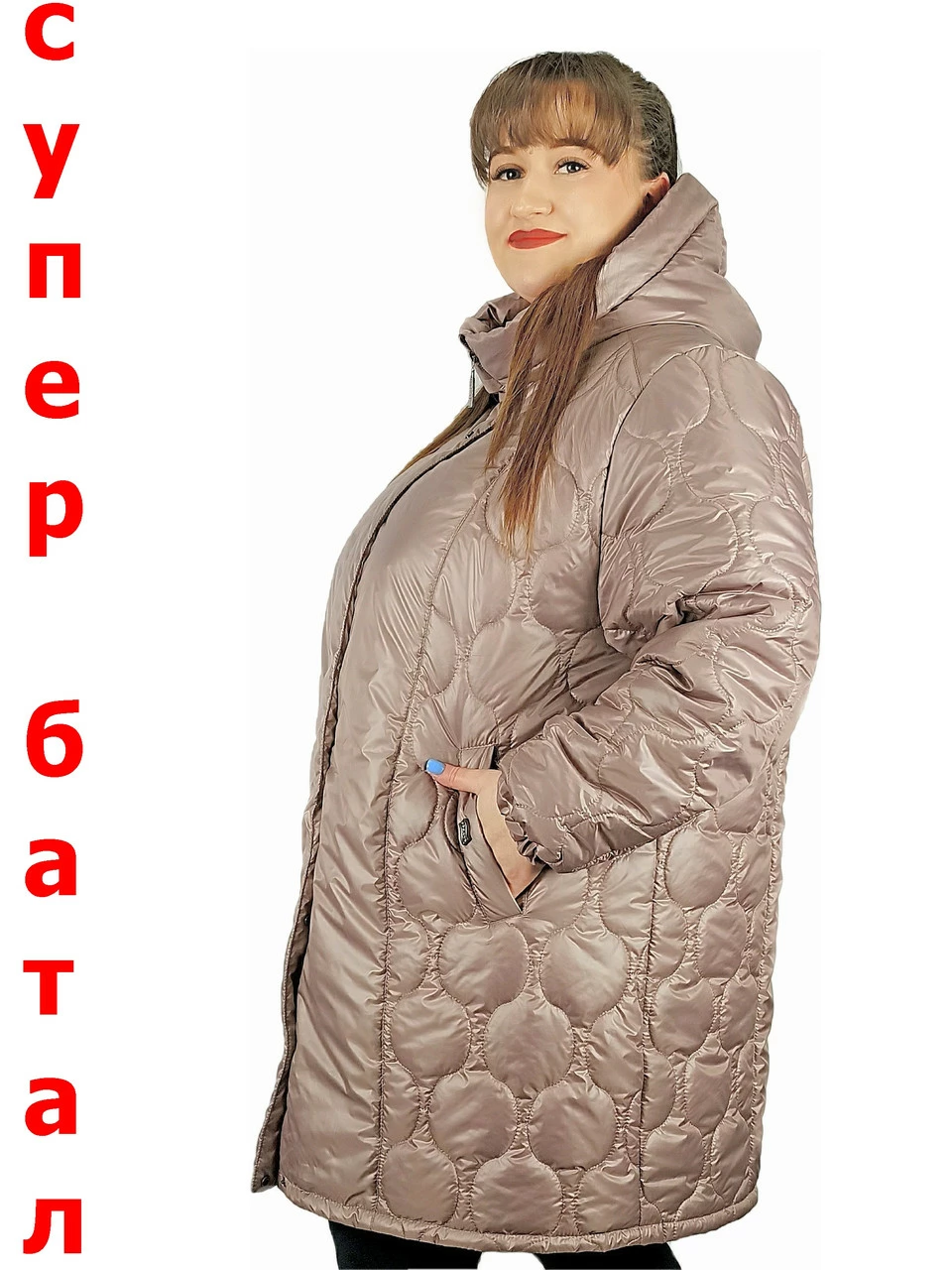Стильная демисезонная женская куртка большого размера.Ткань плащевка ,наполнитель силикон 100.Длина изделия 93/98см.,длина рукава 68см. Сезон - ОСЕНЬ,ВЕСНА.