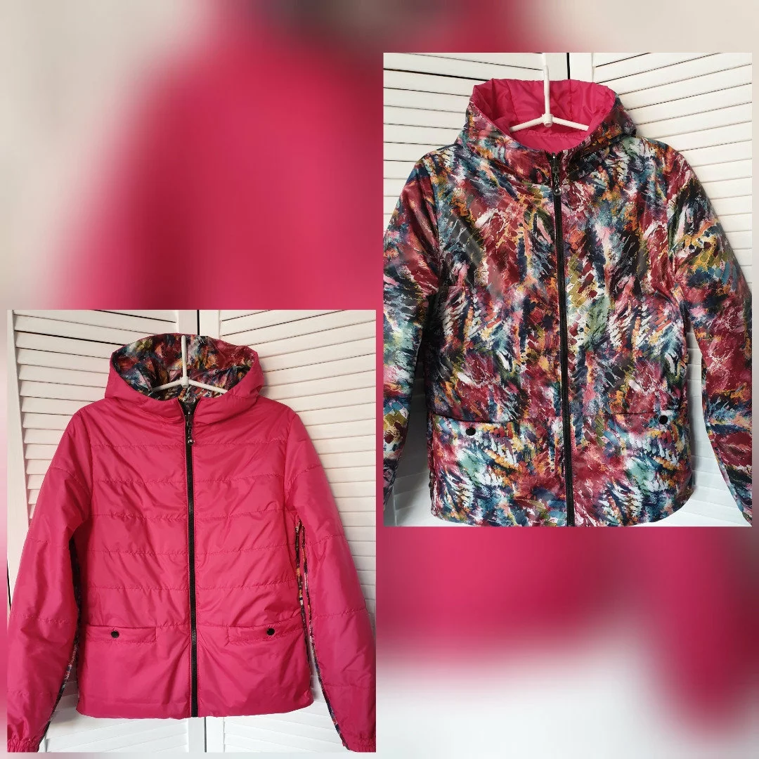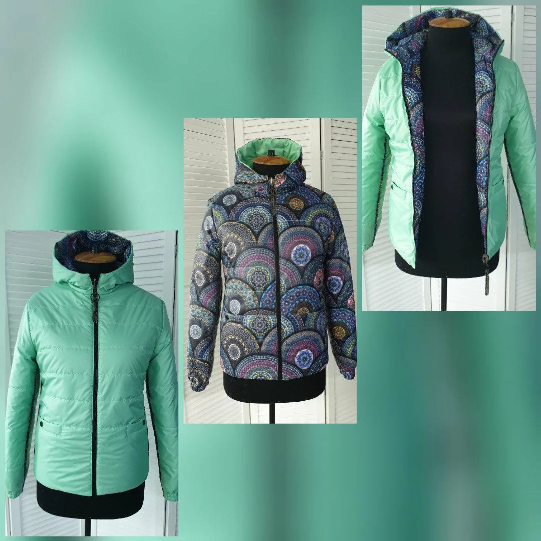 Новинка сезона-двусторонняя курточка. С этой моделью Вы на ходу сможете изменить свой имидж.Ткань мемори-лаке.Утеплитель силикон 100.Капюшон несъемный.Рукав на резиночке. Однотонную сторону можете выбрать по своему желанию из цветов: чёрный,темно-синий,жёлтый,зеленый,красный,коралл,мята,ментол, молочный,электрик.