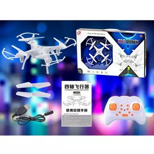 Квадрокоптер X13 радіокер. 2.4G, акум., додаткові лопаті, 2 кольори, USB, світло, кор., 40-25-6 см.