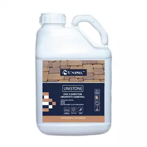 Щоб фасад будинку або кам'яної огорожі завжди виглядав акуратно, не розсипався під дією вологи і морозів, використовуйте лак для каменю від UNISIL, UNISTONE "мокрий камінь".
