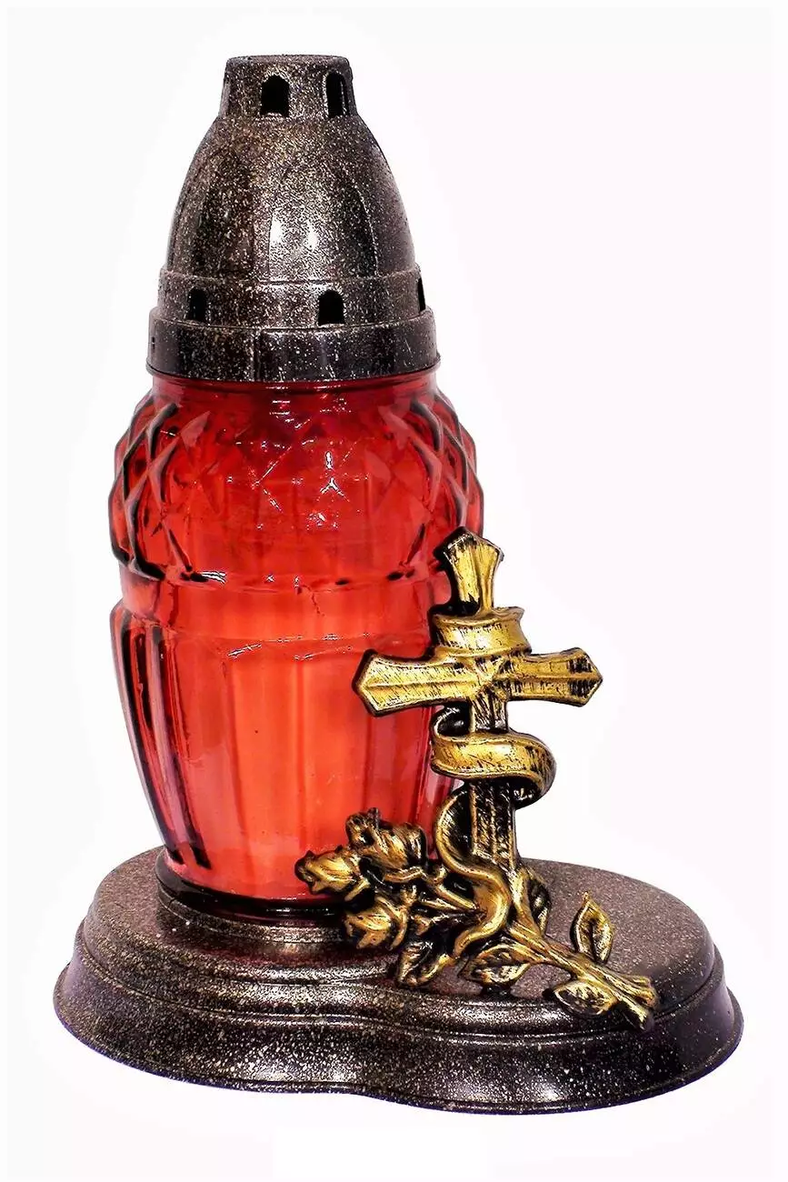 Лампадка виготовлена зі скла, з пластиковою кришечкою та пластиковою підставкою. Висота 210 мм, час горіння парафінової запаски - 20 години.