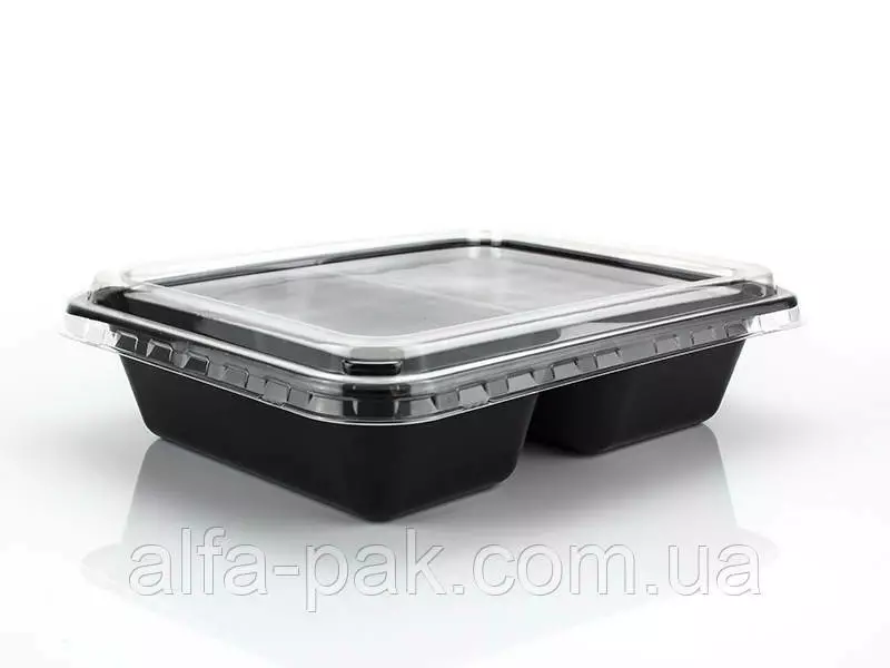 Ланч-бокс Т-2 двухсекционный черный — удобная и практичная тара,
