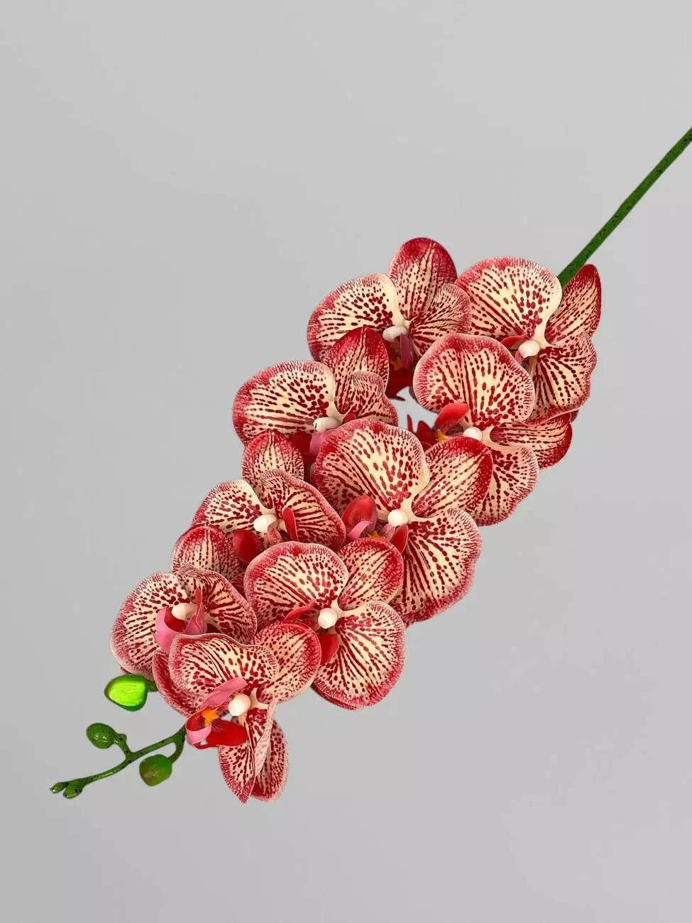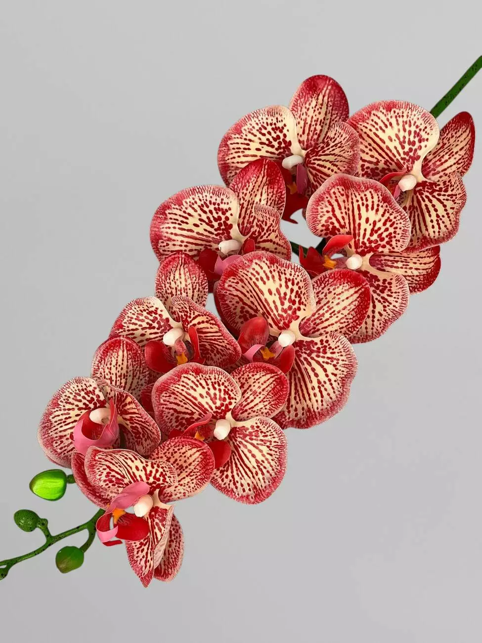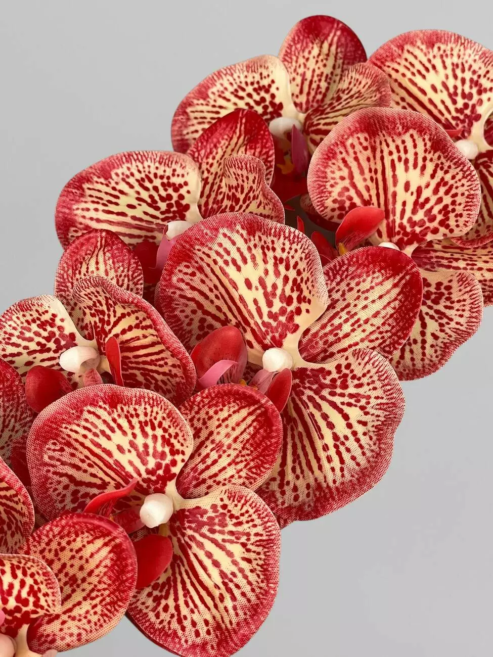 Латексна орхідея Фаленопсіс на 9 суцвіть, жовтий з червоним принтом, 96 см