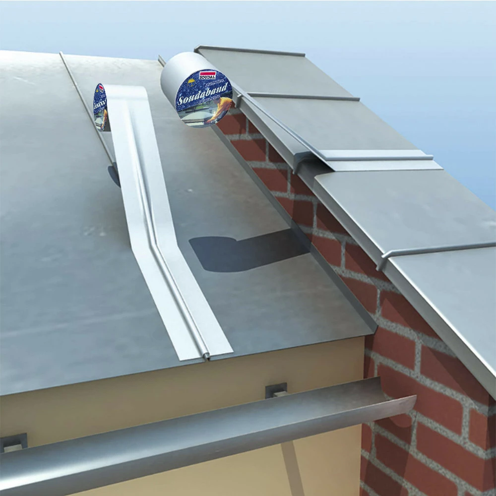 Лента битумная SOUDAL SOUDABAND относится к класу бытовых, профессиональных, кровельных герметиков. Soudaband – это битумная самоклеящаяся герметизирующая лента, ламинированная алюминиевой фольгой. Применяется для герметизации плоских и угловых элементов кровли, дымоходов, водосточных желобов, труб. Обеспечивает немедленную герметизацию. Самоклеящаяся лента с хорошей адгезией. Устойчива к неблагоприятному атмосферному влиянию и излучению УФ. Немедленная герметизация. Очень проста в применении. Обладает адгезией ко всем традиционным строительным материалам. Удлинение до отрыва составляет 20%.