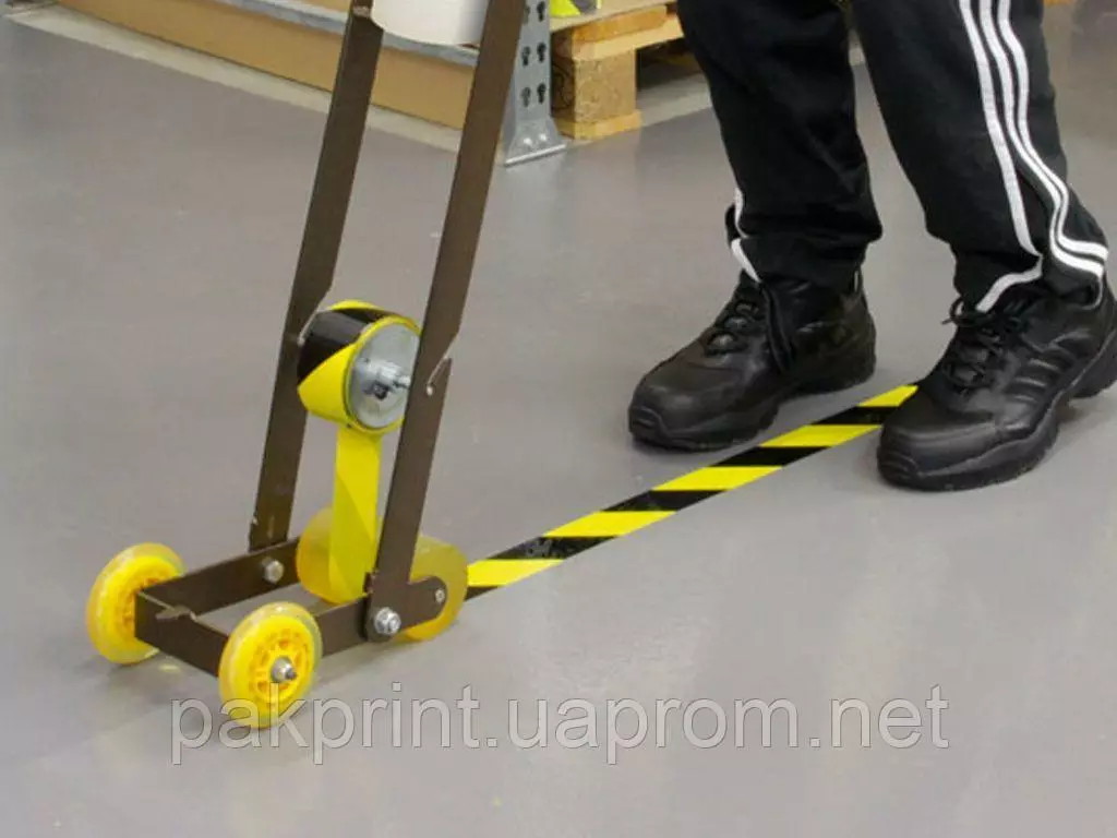 Сигнальный скотч желто черный - предупредительная поливинилхлоридная (ПВХ) клейкая лента на основе клея из натурального каучука. Производство компании ПАКПРИНТ, Сигнальная маркировочная (оградительная) клейкая лента применяется для долговременного маркирования подвижных и недвижимых предметов, разметки поверхностей, для предупреждения об опасности в производственных зонах. Используется на предприятиях, в складских комплексах, в служебных помещениях с опасными объектами (електрощитовых, подъемно - транспортное оборудование, трубопроводы и т. п. ), в больницах и других учреждениях для обозначение особых объектов.