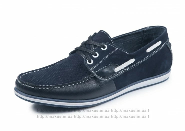 Летние мокасины на шнурках Maxus. Модель ТОП к/з синие с перфорацией.
