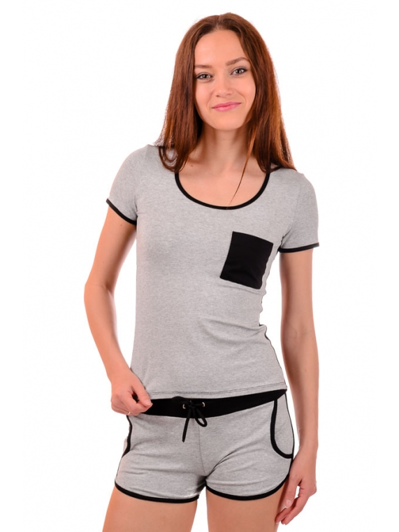 Отличный спортивный комплект шорты с футболкой. Подойдет как для занятий спортом, так и для повседневной прогулки, либо поездки на отдых. Очень интересно смотрится за счет сочетания контрастных цветов. На груди и сзади на шортах - пришивные карманы. Шорты затягиваются на шнурок. Ткань - вискоза. Длина футболки 56см, длина шорт 27см.