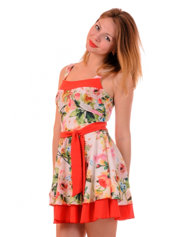 Летний красивый сарафан из легкой воздушной ткани. Спинка изделия прострочена ниткой-резинкой, за счет чего идеально садится по фигуре. Красивая двойная юбка с подъюпником создает нежный женственный образ. Пояс подчеркивает талию. Ткань - тисненный креп. Длина изделия 81 см.