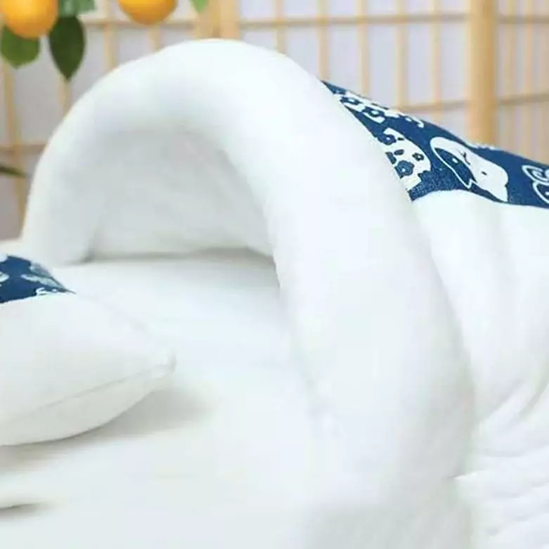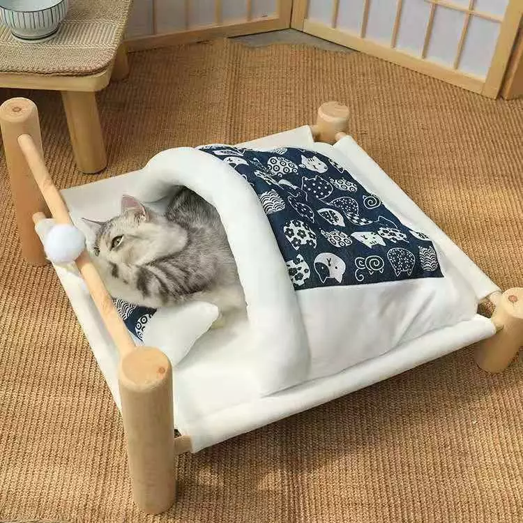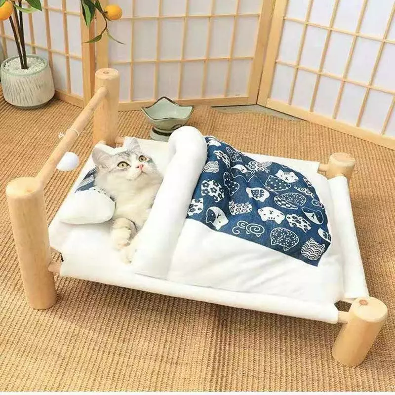 ковдрою, з подушкою, і з іграшкою на узголів'ї, щоб коту було чим