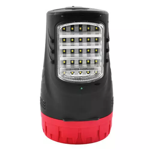 Корпус - пластик. Заряжается от сети 220V, шнур для зарядки прячется в корпус фонаря.