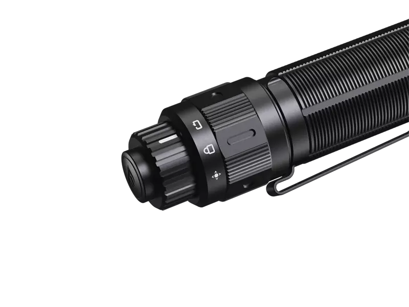 Fenix TK22TAC включається м'яким натисканням (без натискання) тактичної кнопки в розблокованому та вимкненому стані. Це дозволяє миттєво активувати модель. Якщо відпустити перемикач – відключиться. Щоб зафіксувати увімкнення ліхтаря, слід зусиллям натиснути на тактичну кнопку і знову натиснути на неї, якщо потрібно вимкнути ліхтар.