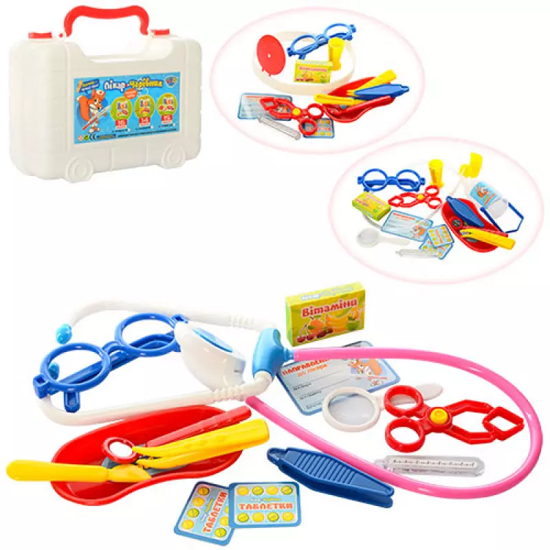 Фотография 1 товарной позиции интернет-магазина детских игрушек www.smarttoys.com.ua Лікар M 0464 ABC U/R 3 види, валіза, 20-16-7 см.