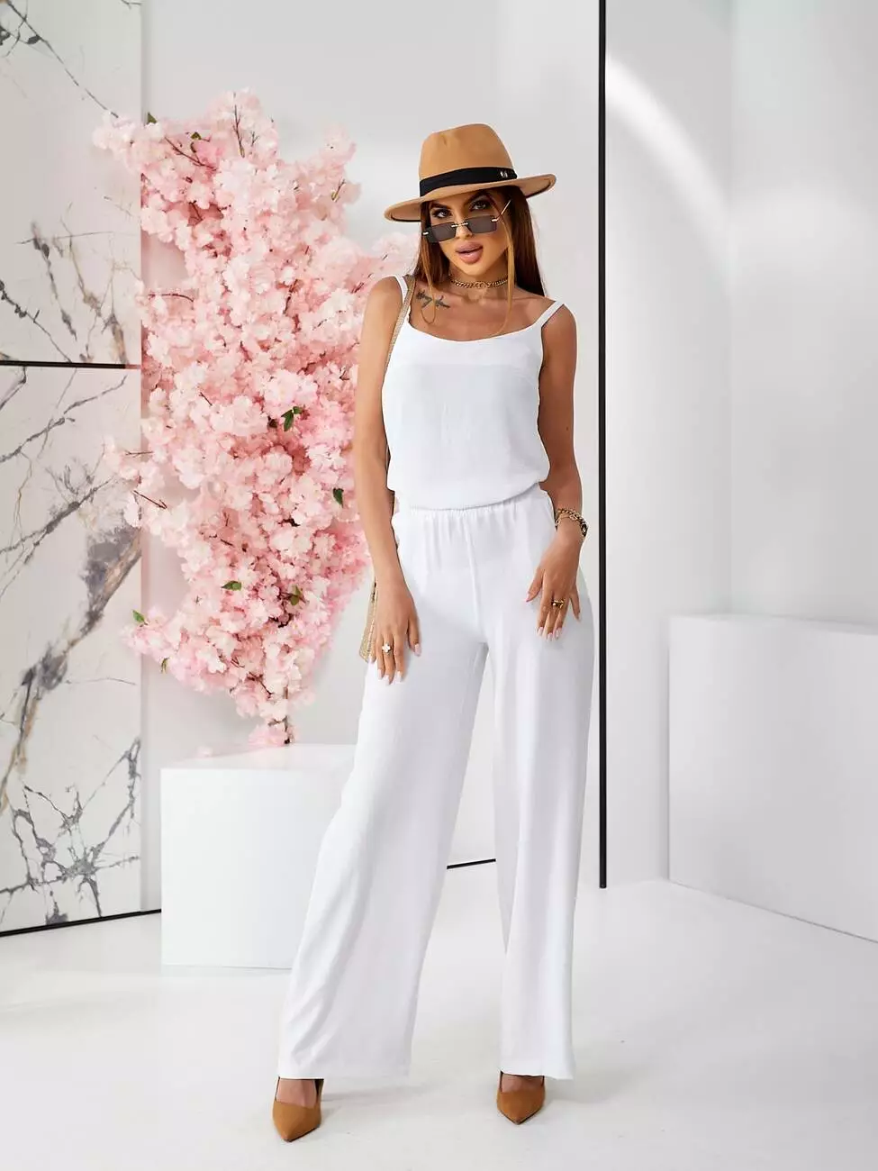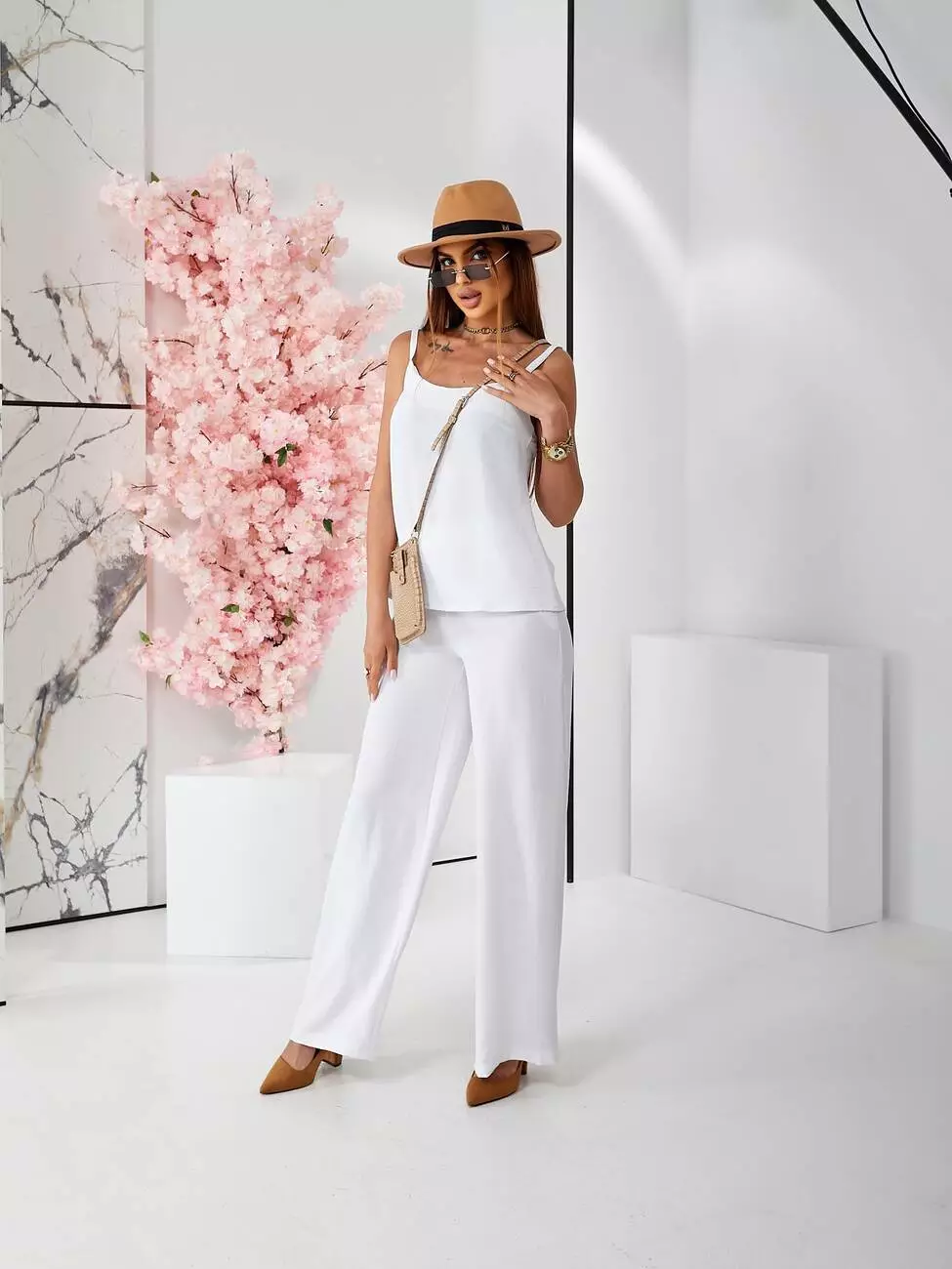 Брючний костюм з топом білого кольору
