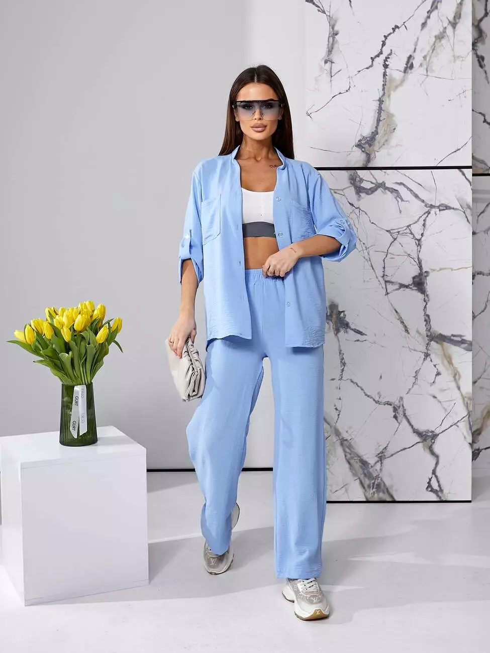 Костюм літній блакитного кольору з штанами