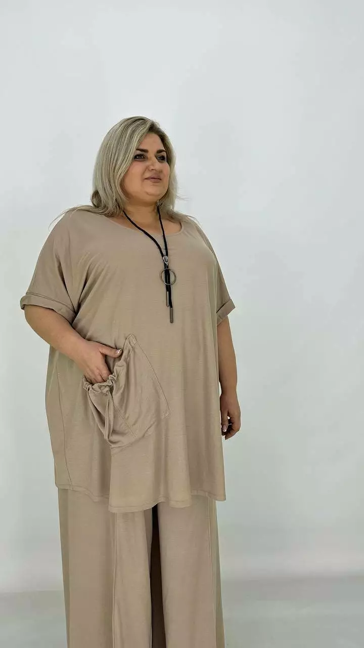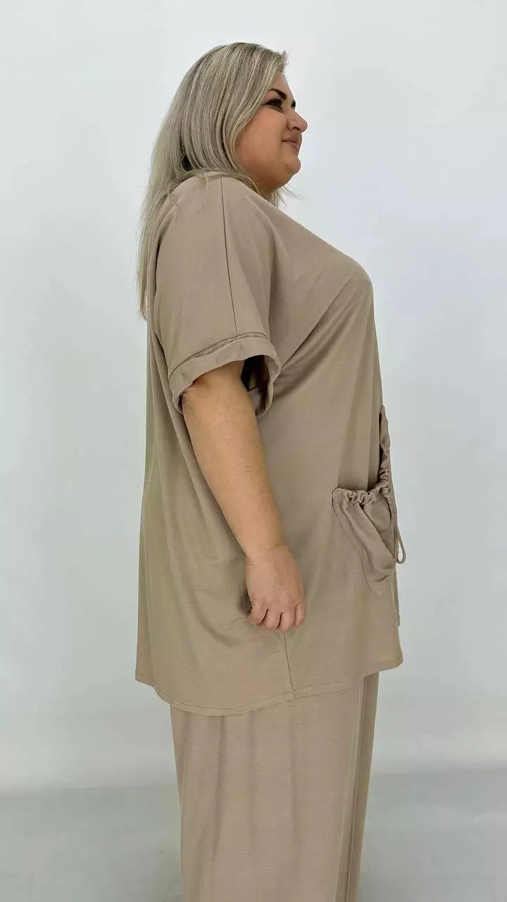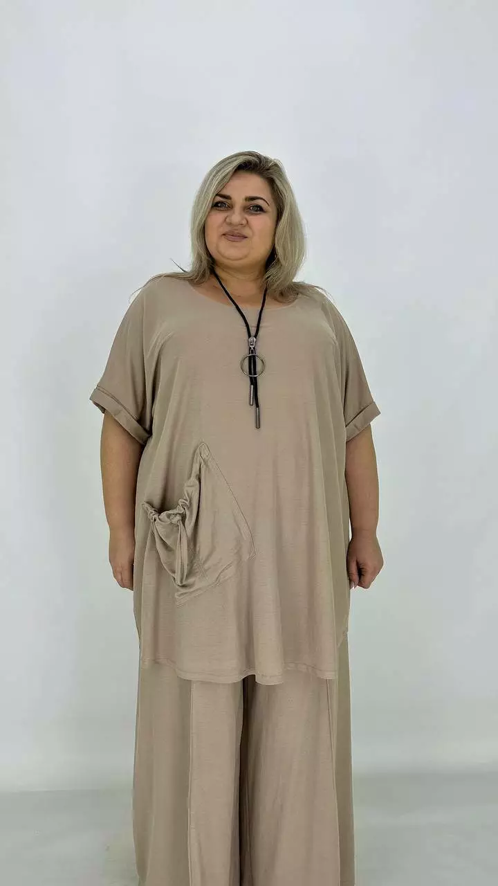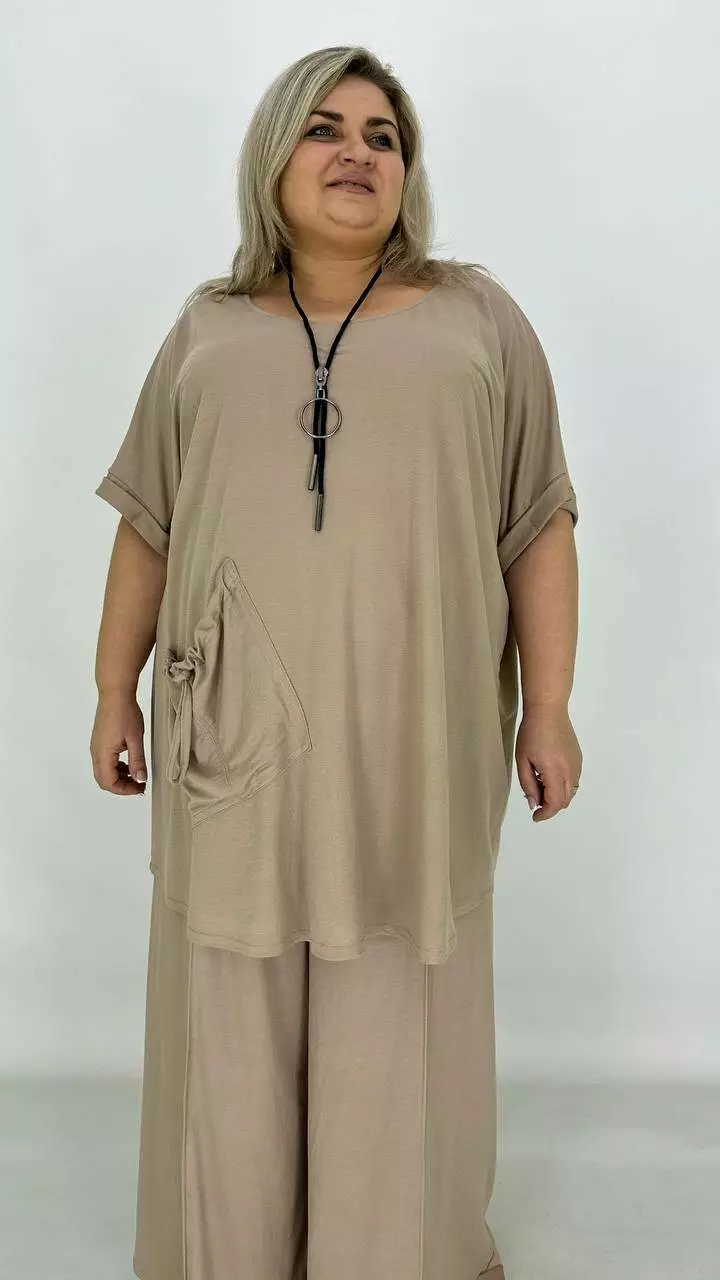 Туніка вільного силуету зі спущеним плечем-оверсайсом. Тканина дихає, гіпоалергенна. створює ефект прохолоди, приємна до тіла, мнеться, гладити з вивороту, прати 40 градусів у ручному режимі.
