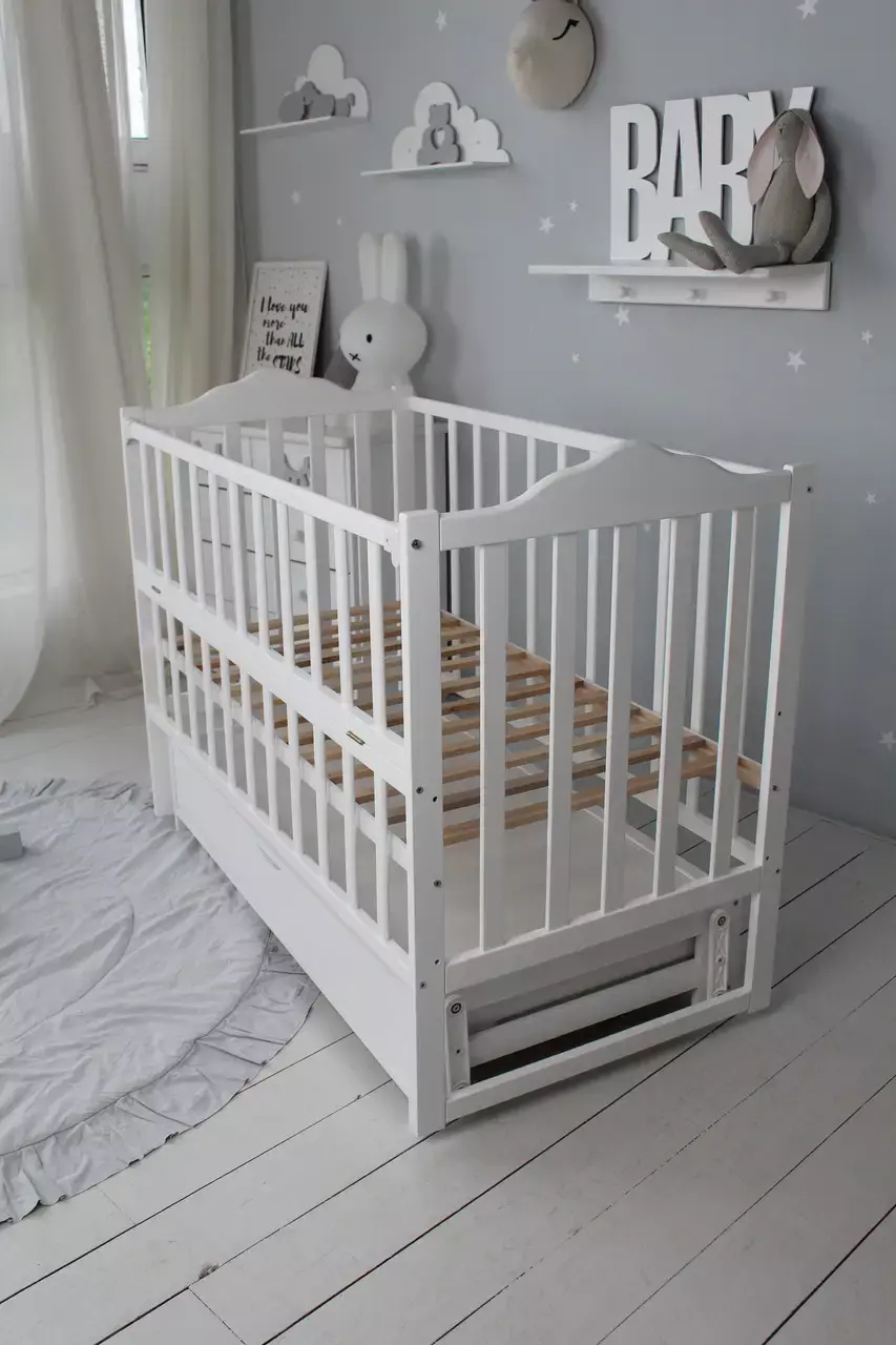 Найсолодші і найбільш приємні сни ваш малюк побачить у нашому чудовому ліжечку Baby Comfort ЛД3. Гарне, стильне, практичне і зручне. Ліжко виконане з натурального матеріалу - масиву дерева бук, зверху покрите фарбою на водній основі. Представлене у приємному білому кольорі - відмінно підійде як для дівчинки, так і для хлопчика. Ліжечко має всі характеристики, які потрібні для повноцінного сну вашого малюка. Є відкидний бортик, 3 положення днища, а також маятникова система заколисування з фіксатором. Ліжечко укомплектоване шухлядою закритого типу, куди можна складати всі необхідні речі немовляти. З цим ліжечком малюк буде спати в повному комфорті і безпеці, а новоспечена мама буде насолоджуватися материнством на всі сто відсотків.